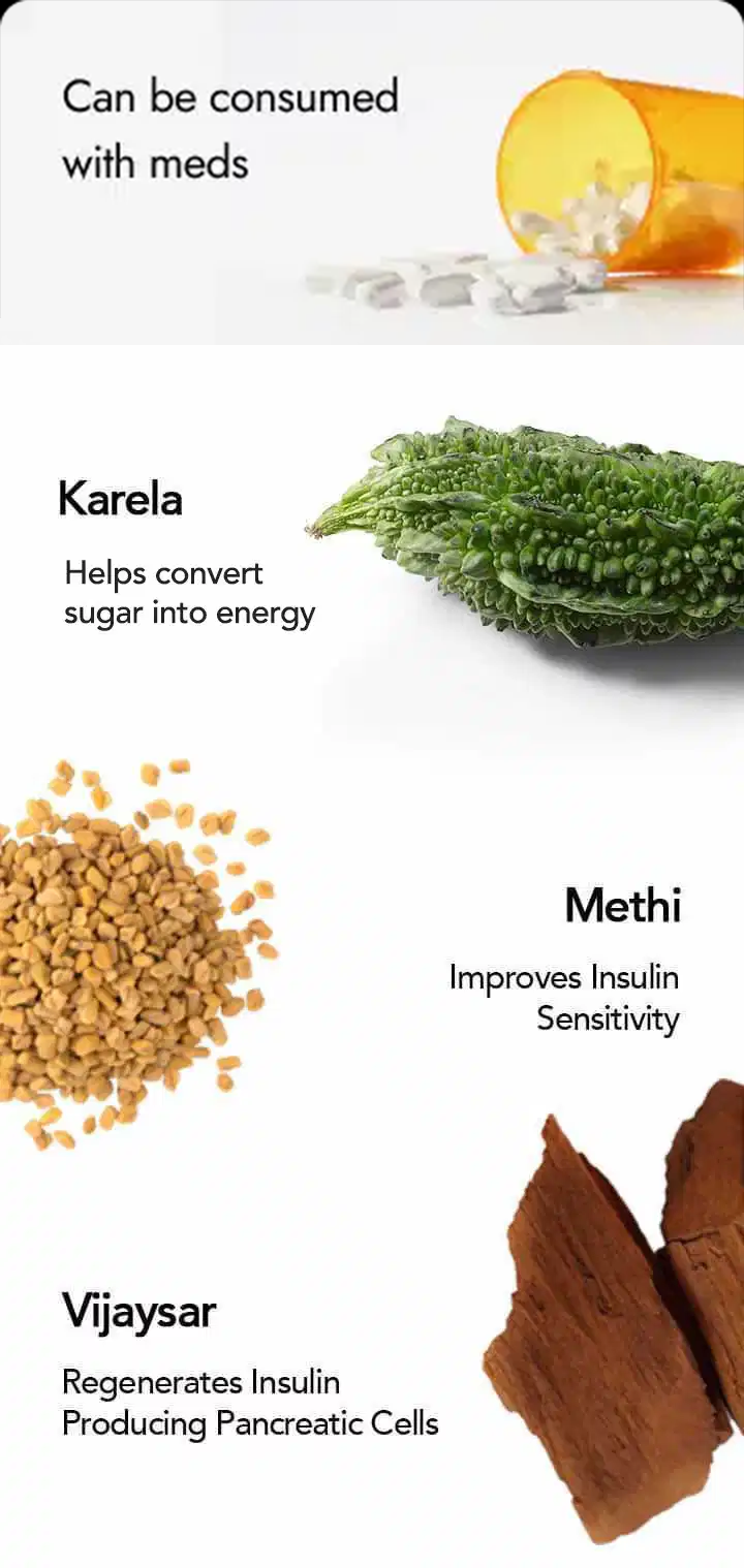 Naturally helps manage blood sugar and HbA1c levels on consuming as advised for at least 3 Months